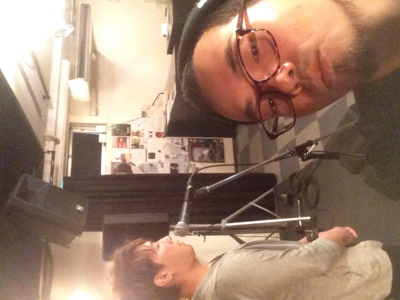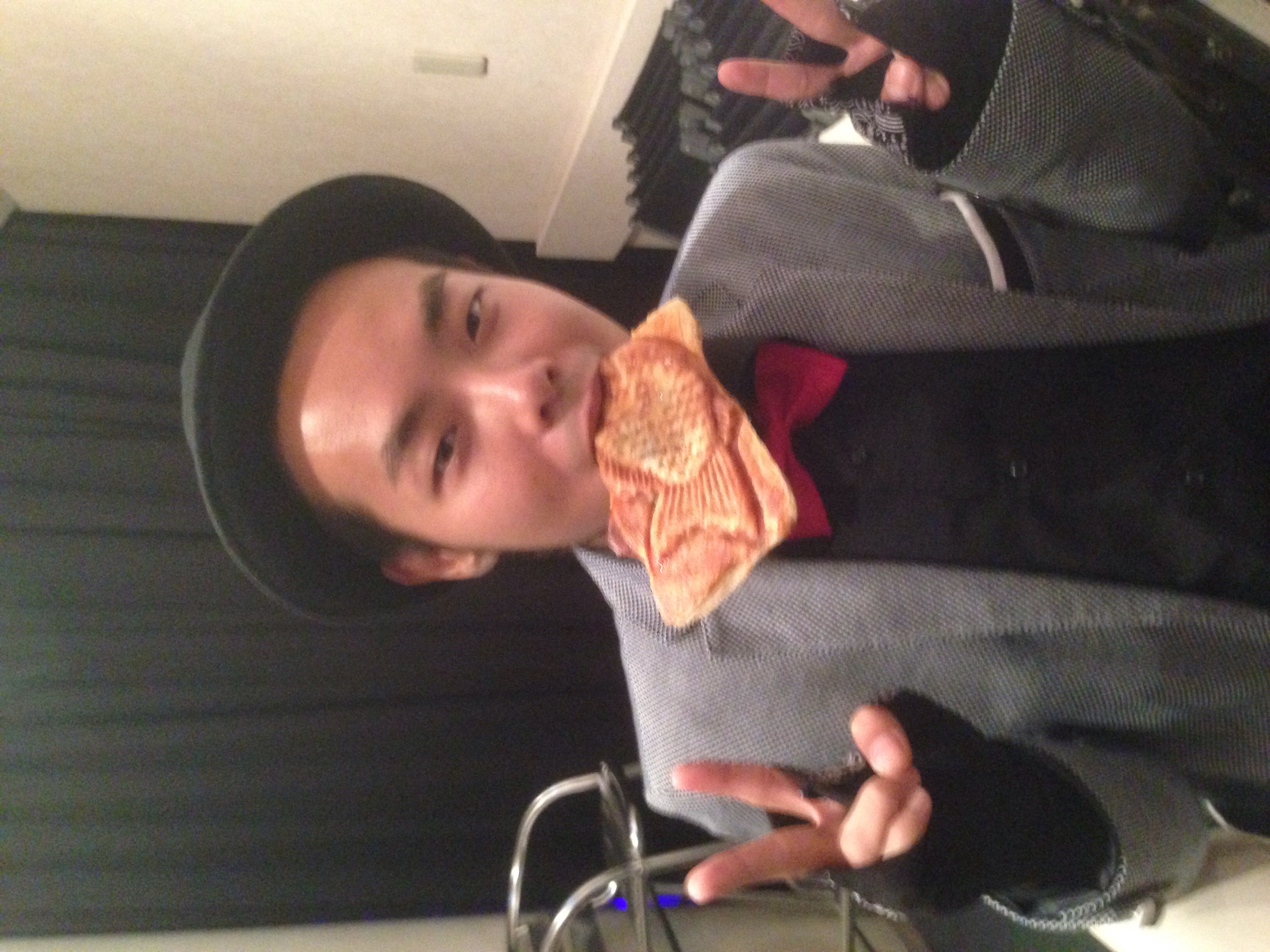 そんな由布紀さんを見てたらお腹が空いてきたので差し入れで頂いたクロワッサンたい焼きを頬張るmaa君とchin 笑