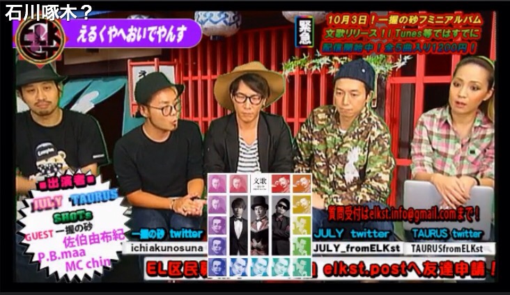 本日、僕たち一握の砂はnico@NIGHTで毎週22:00〜放送しているELKst.さんの番組、“えるくやへおいでやんす!”に出演して参りました!